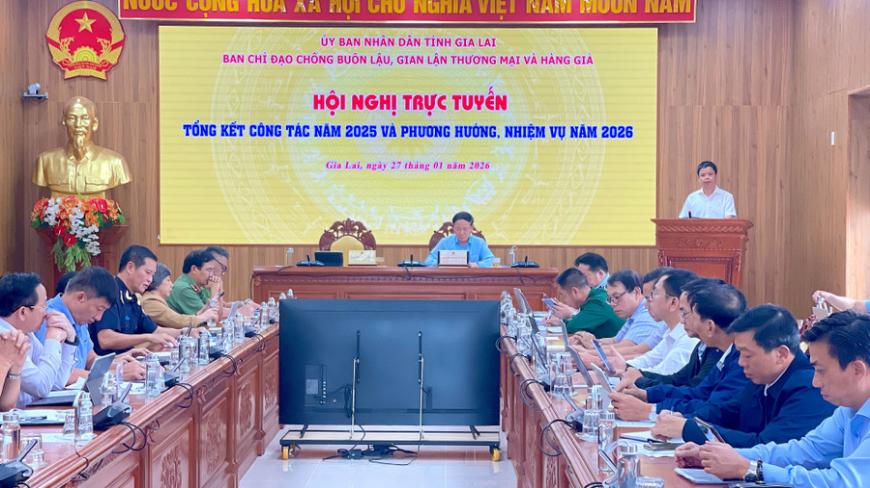 Chiều 27-1, Ban Chỉ đạo chống buôn lậu, gian lận thương mại và hàng giả (Ban Chỉ đạo 389) tỉnh Gia Lai tổ chức hội nghị trực tuyến tổng kết công tác năm 2025 và đề ra phương hướng...