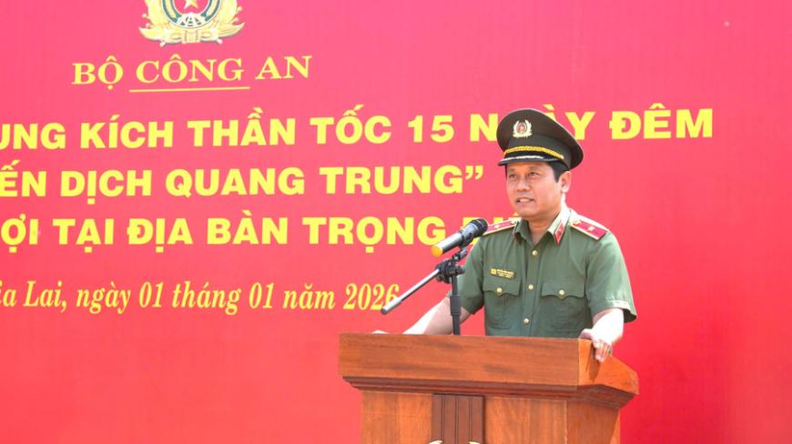 Sáng 1-1, hòa trong không khí chào năm mới, tại khu phố Hải Bắc (phường Quy Nhơn Đông, tỉnh Gia Lai), Bộ Công an tổ chức Lễ xuất quân xung kích thần tốc 15 ngày đêm "Chiến dịch Qu...