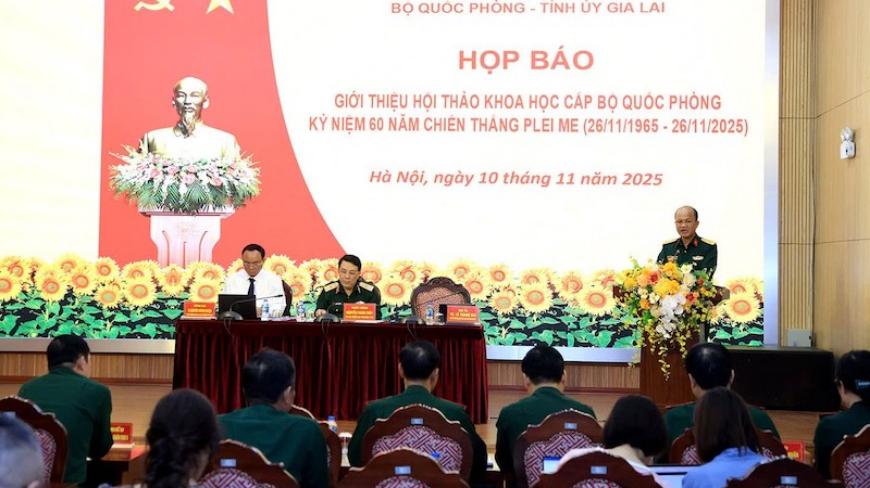 Ngày 10/11, Bộ Quốc phòng phối hợp với Tỉnh uỷ Gia Lai tổ chức họp báo giới thiệu Hội thảo khoa học cấp Bộ Quốc phòng Kỷ niệm 60 năm Chiến thắng Plei Me (26/11/1965-26/11/2025).