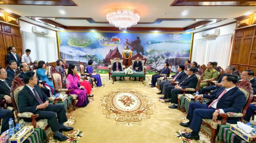 Tiếp tục chuyến thăm các tỉnh Nam Lào nhân dịp Tết cổ truyền Bunpimay, sáng 5-4, đoàn đại biểu cấp cao tỉnh Gia Lai do đồng chí Thái Đại Ngọc - Ủy viên Ban chấp hành Trung ương Đả...