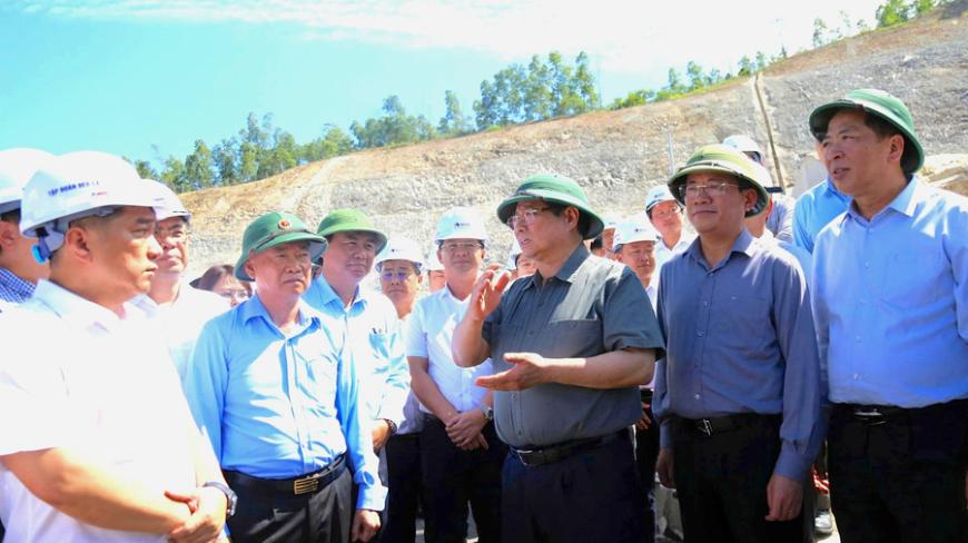 Sáng 1-3, Thủ tướng Chính phủ Phạm Minh Chính cùng lãnh đạo các bộ, ngành Trung ương đã đến kiểm tra Dự án cao tốc Quảng Ngãi - Hoài Nhơn cùng Dự án đầu tư xây dựng đường cất hạ c...