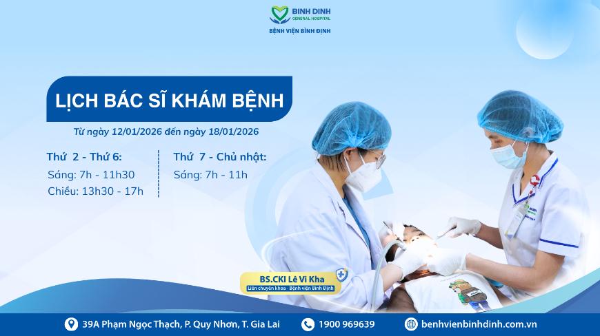 📝 LỊCH KHÁM BÁC SĨ BỆNH VIỆN BÌNH ĐỊNH TỪ 12/01/2026 ĐẾN 18/01/2026.