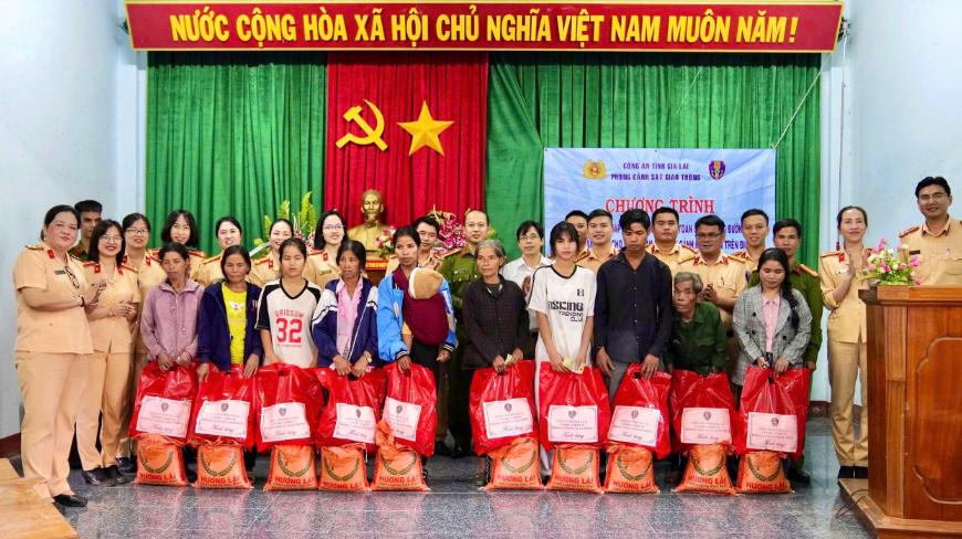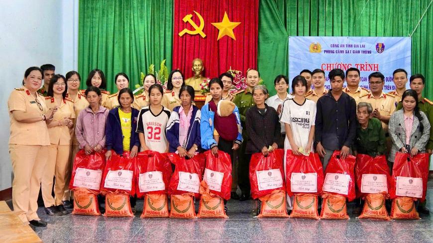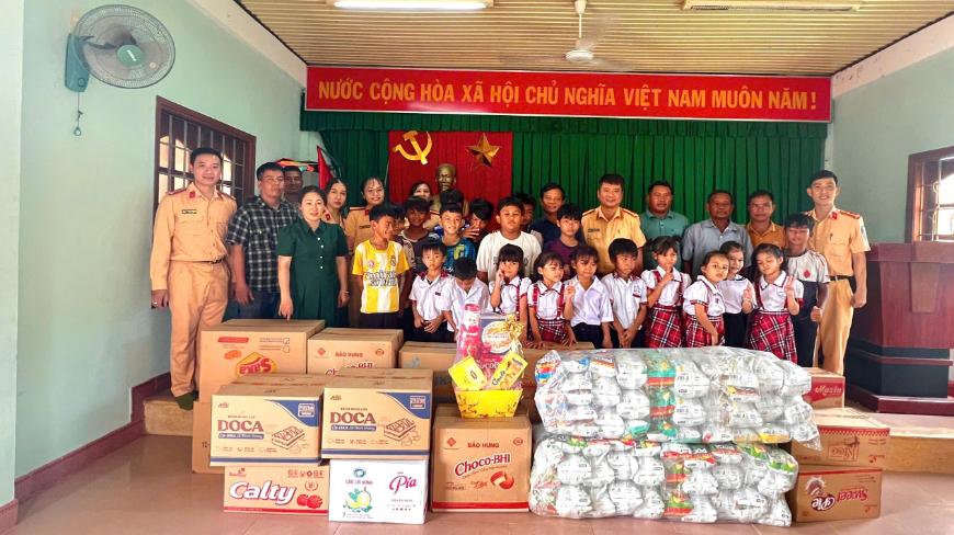Phòng CSGT Gia Lai: Thăm, tặng 200 suất quà cho các em thiếu nhi làng Canh Thành, xã Vân Canh