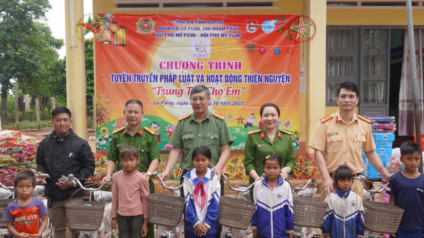 Hòa chung không khí vui Tết Trung thu năm 2025, ngày 03/10, Đoàn Thanh niên và Hội Phụ nữ Phòng CSGT tỉnh Gia Lai tổ chức chương trình trao quà cho các cháu thiếu nhi làng kết ngh...