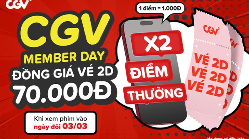 TẶNG GẤP ĐÔI ĐIỂM THƯỞNG - GIẢM GIÁ LẦN MUA SAU ĐỒNG GIÁ 70.000Đ/VÉ 2D - DUY NHẤT NGÀY 03/03