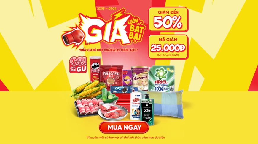 💥 GO! cho mọi GU, giá nào cũng chiều, deal nào cũng hời: Giảm đến 50% nhiều sản phẩm, Tặng voucher 25.000Đ, Mua 2 tính 1, Mua 2 tặng 1 trên GO! App và GO! Website.