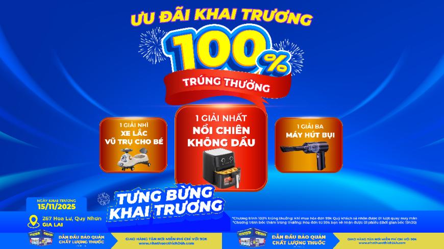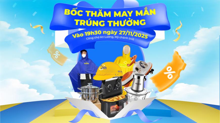 Chương trình "BỐC THĂM MAY MẮN TRÚNG THƯỞNG" nhân dịp Khai trương Chi nhánh mới của Chuỗi Nhà Thuốc Thích 24h tại địa chỉ: Cổng chợ An Lương, Mỹ Chánh (cũ) vào ngày 27/11/2025