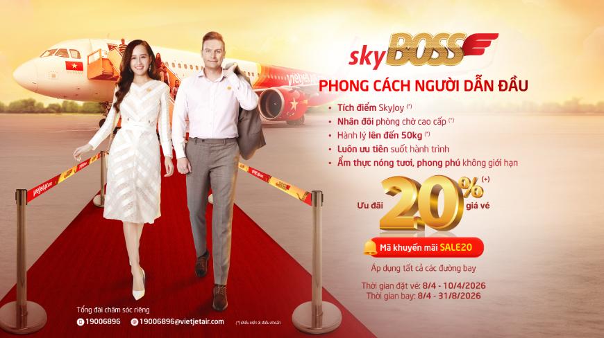Đi xa mà vẫn “xịn mịn” thì phải chọn SkyBoss nha! Chỉ 4 ngày săn deal 20%, bay quốc tế đẳng cấp mà giá lại quá hời 🔥