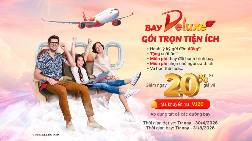 Vietjet bật ưu đãi 20% cho vé Deluxe. Canh ngày để xuất ngoại du xuân nha!