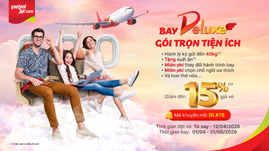 Vietjet tặng bạn ưu đãi cực lớn: Giảm từ 10%-15% vé Deluxe, nhanh tay là lời liền cho chuyến du hí nha!
