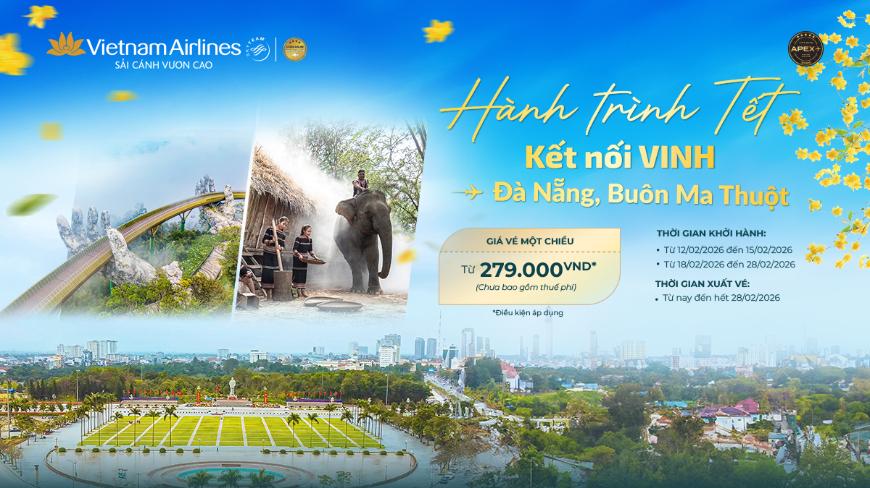 🌸✈ LÌ XÌ ĐẦU NĂM, MỞ LỐI DU XUÂN TỪ VINH CÙNG VIETNAM AIRLINES