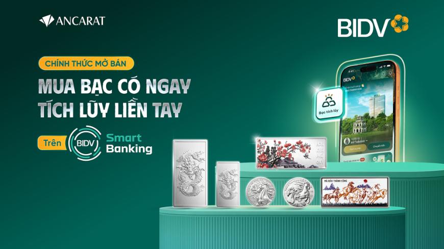 Từ 9h00 ngày 06/02/2026, khách hàng có thể đặt mua bạc miếng, bạc thỏi Ancarat chính hãng, thanh toán ngay trên BIDV SmartBanking và nhận bạc ngay sau khi thanh toán thành công