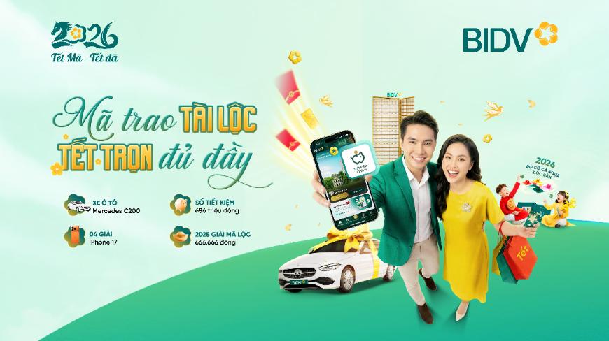 Tết Bính Ngọ 2026 đang đến rất gần. BIDV mang tới chương trình “Mã trao tài lộc – Tết trọn đủ đầy” với hàng chục nghìn Mã ưu đãi – Mã dự thưởng – Mã Lực – Mã tài lộc, quà Tết đã s...