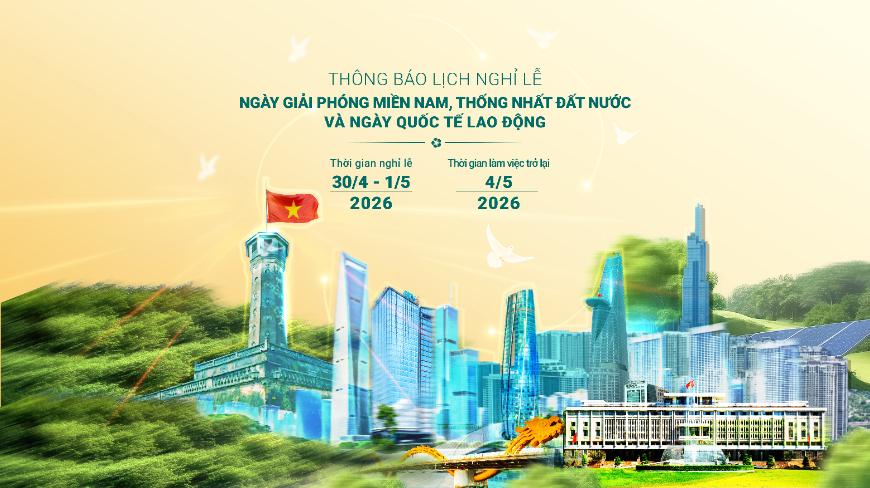 Thông báo Lịch hoạt động dịp lễ 30/4 - 1/5 năm 2026