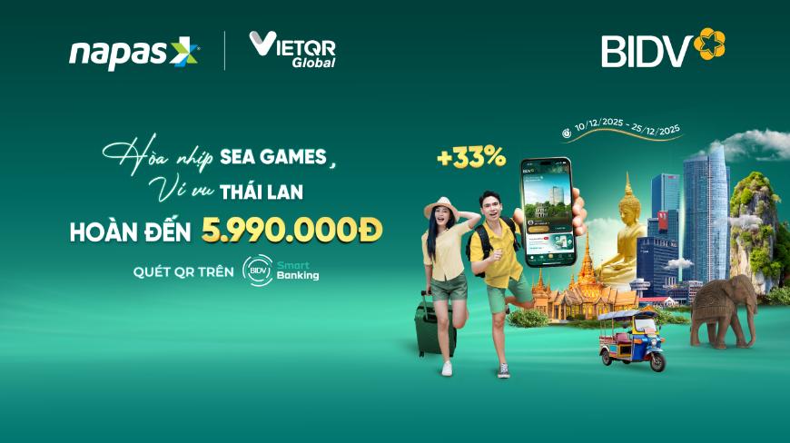 Thoải mái mua sắm, hòa chung nhịp đập cùng đội tuyển Việt Nam tại xứ Chùa Vàng và tận hưởng ưu đãi đến 5.990.000đ khi sử dụng BIDV SmartBanking thanh toán QR tại Thái Lan với dịch...