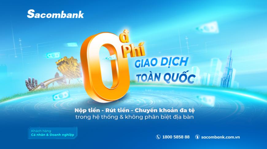 Sacombank MIỄN PHÍ giao dịch toàn quốc, không phân biệt địa bàn 💥