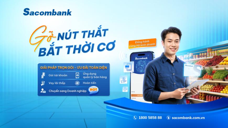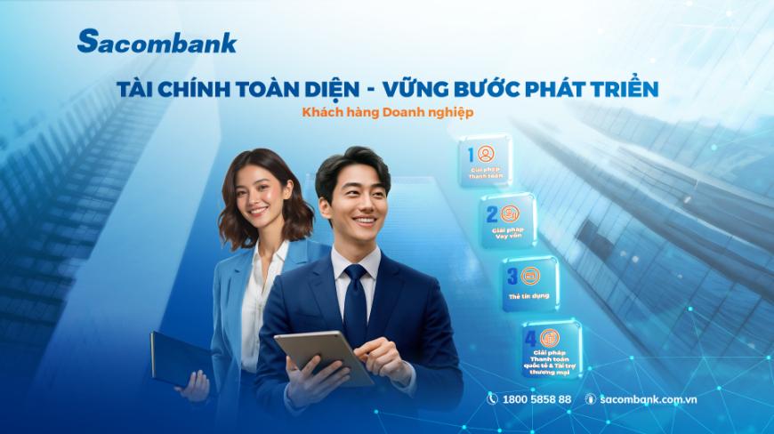 Sacombank mang đến trọn gói giải pháp tài chính với các ưu đãi toàn diện giúp tiết giảm chi phí, tối ưu vận hành, tăng trưởng doanh thu.