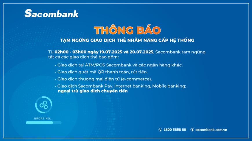 Thông báo Tạm ngừng giao dịch thẻ nhằm nâng cấp hệ thống