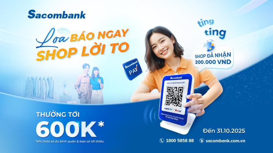 Sacombank mang đến giải pháp LOA THANH TOÁN 📣 Shop sẵn sàng cho một mùa bội thu “ting ting”, nhận tiền không ngơi nghỉ, buôn bán lời hết ý